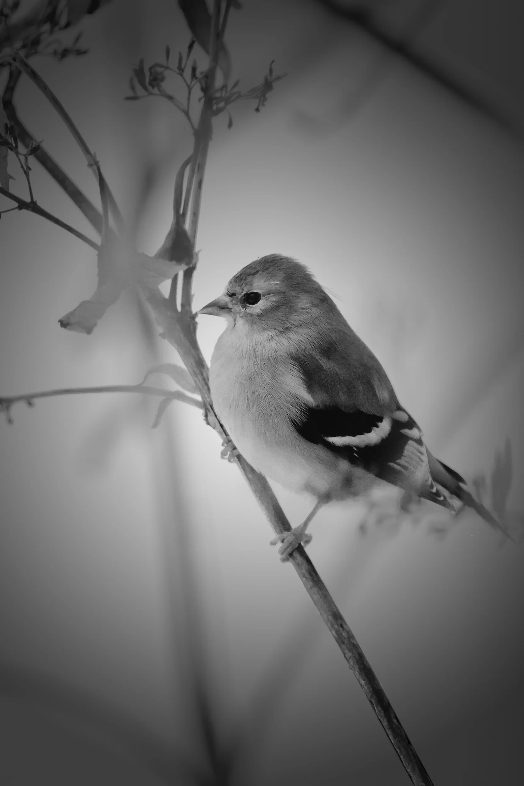 American Goldfinch perched in Winter